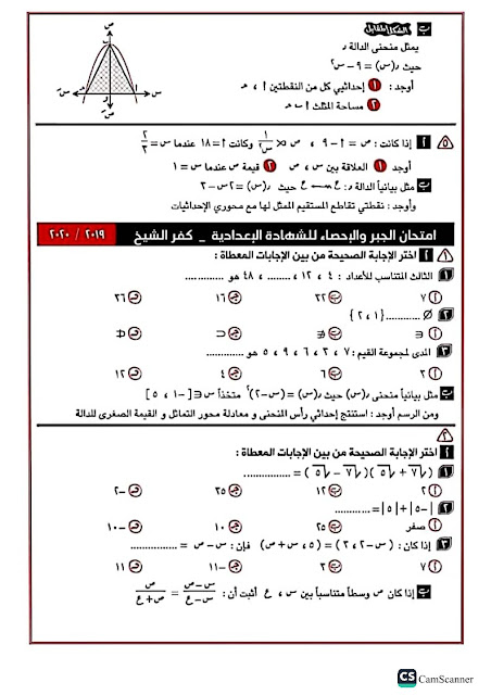 إستعراض نماذج من صور الامتحانات السابقة فى الجبر والهندسة للصف الثالث الاعدادى الترم الاول محافظة كفر الشيخ هنا عبر موقعنا "تعليمك أونلاين"